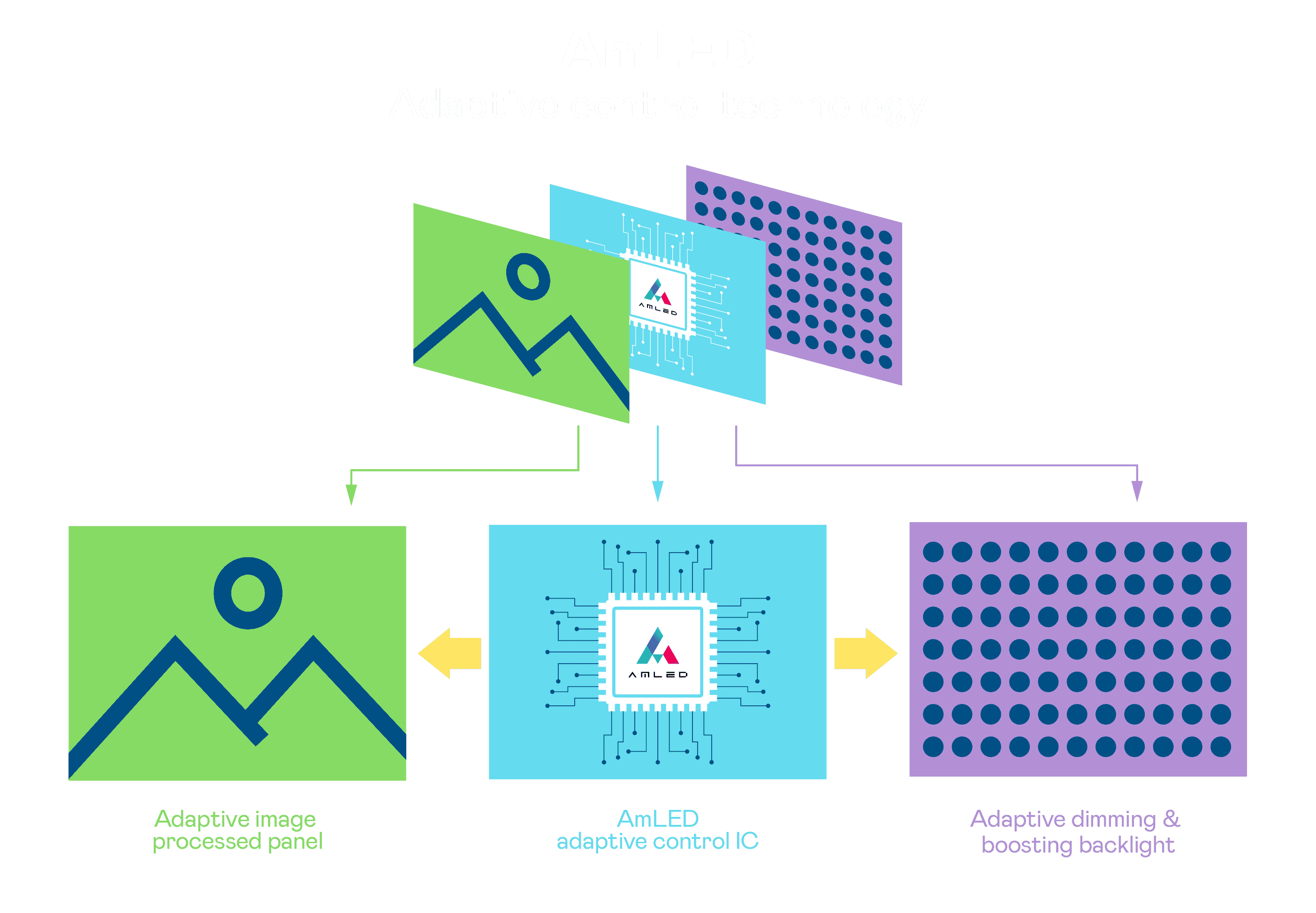 AmLED 具备更省电与低蓝光特性。。。与一般的 LED 背光显示技术相比,,,,由于 AmLED 常时处于局部调光状态,,,,其功耗仅有前者的 50% 左右,,,同时 AmLED 还具备低蓝光特性,,,,满足长时间使用的护眼需求。。。。