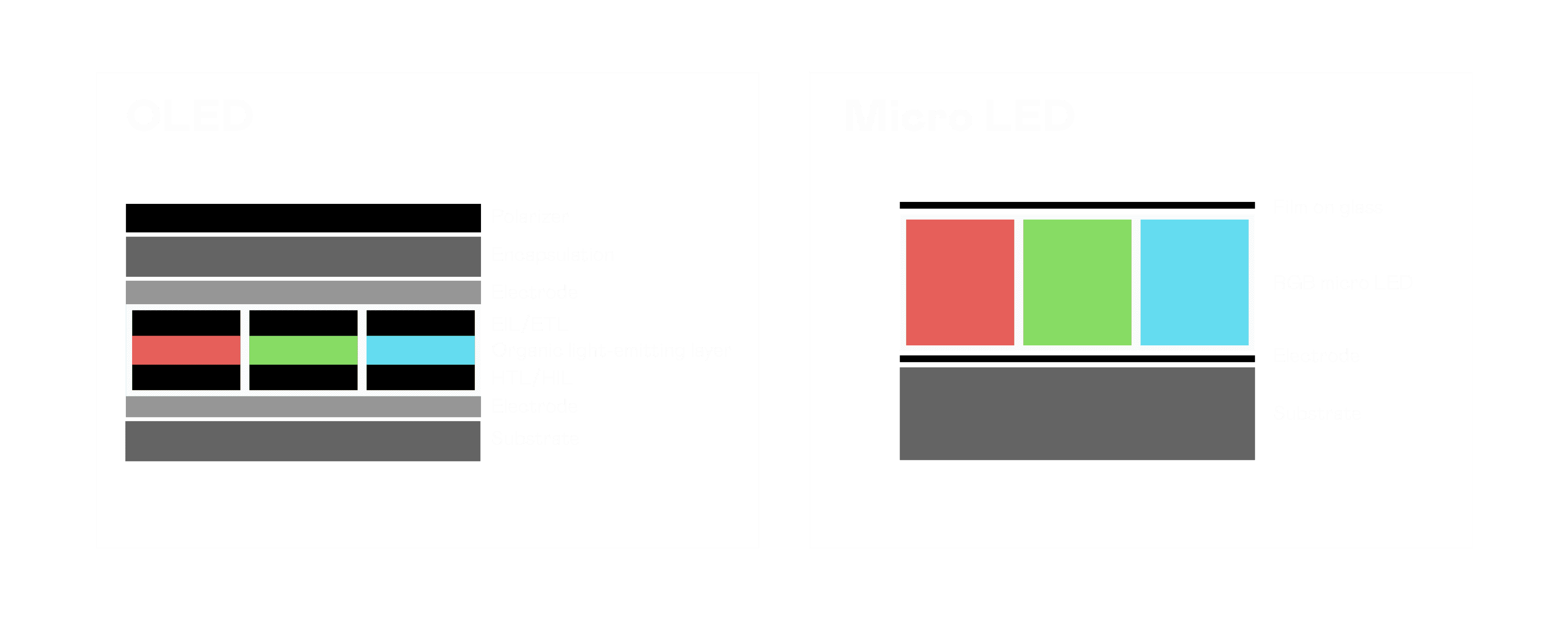 以 LED 做为显示画素,,,可让 LED 的发光效率发挥到极致,,,从而让显示器具备优异的亮度表现,,,不论是在户外或室内,,均具备出众的显示效果。。。同时,,与使用有机材料的 OLED 相比,,,LED 具备更稳定、、、寿命更长的特性,,,不仅不会有画面烙印问题,,,而且更不容易出现故障、、、、坏点。。。